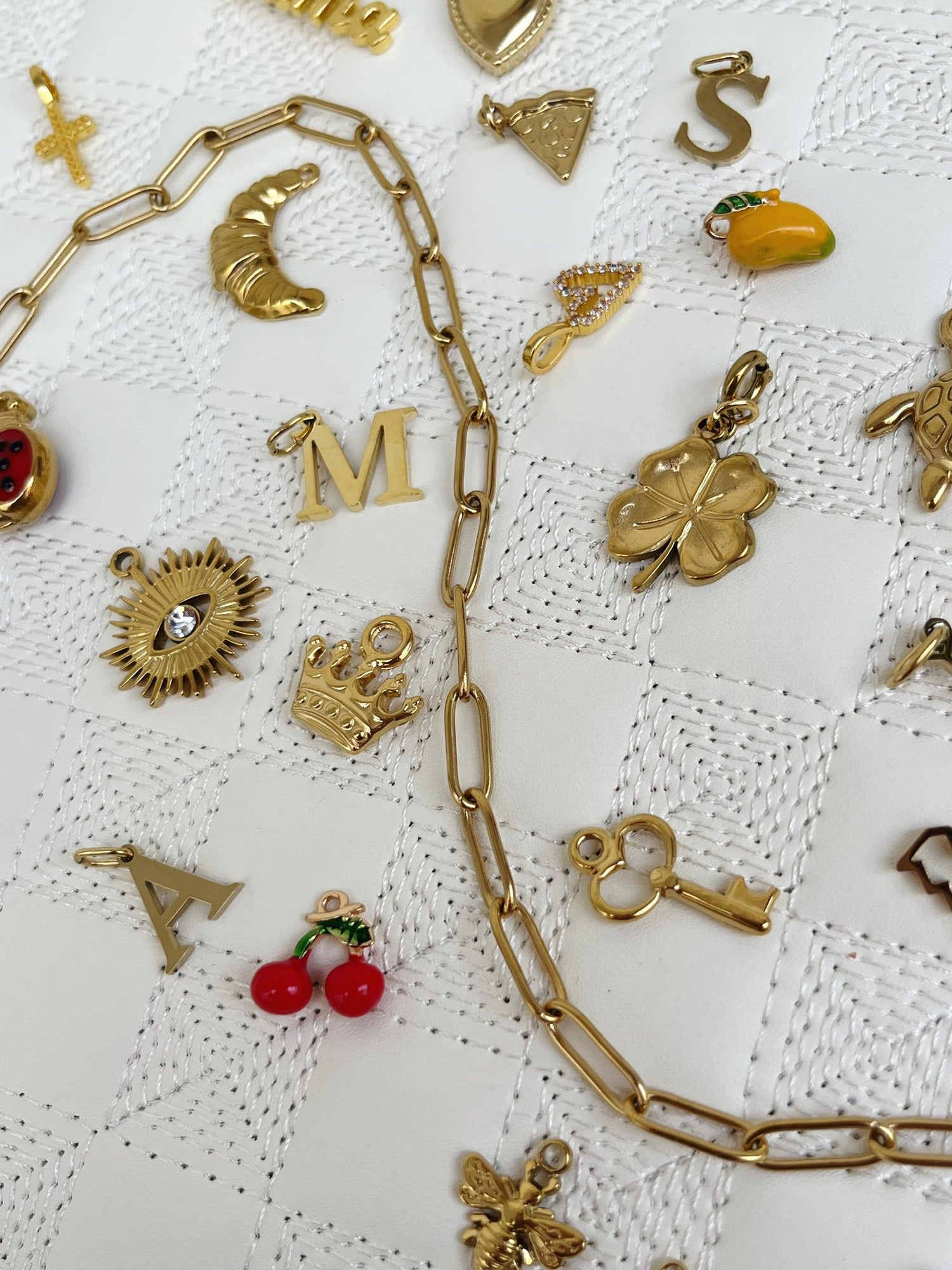 Choose from a variety of charms like initials, zodiac signs, fruit, and food charms to personalize your design at our Charm Bar!