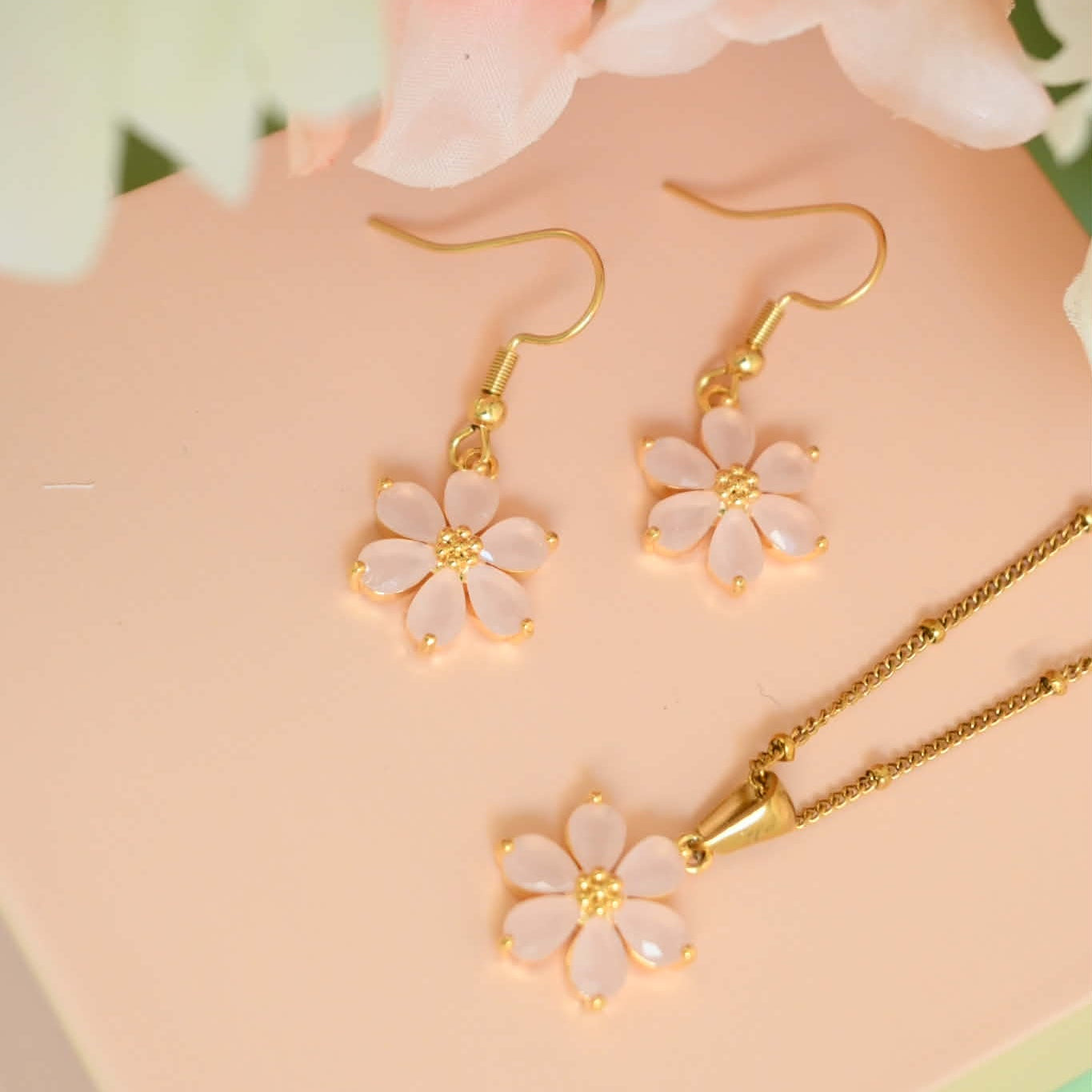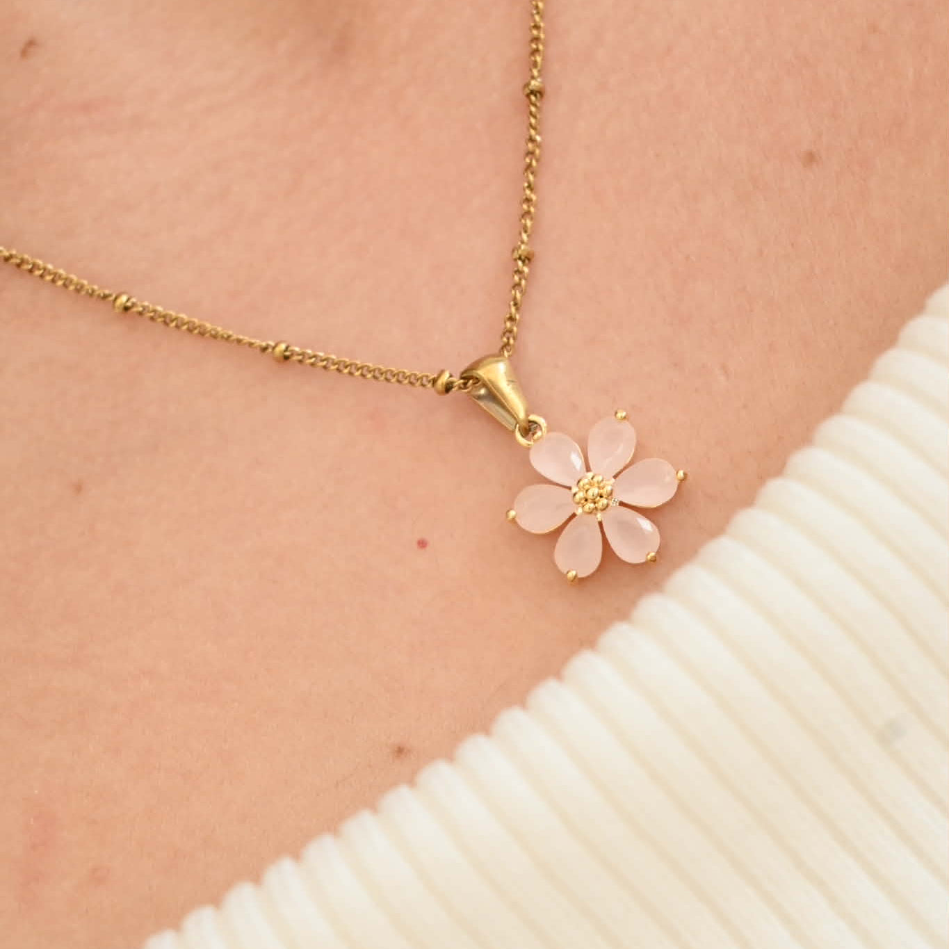 - Pendant Necklace: a delicate floral accent resting elegantly at the neckline