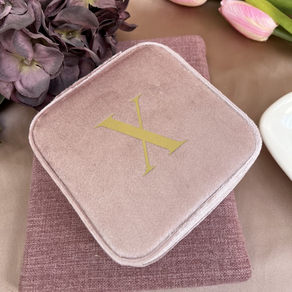 Obtain these elegant velvet jewelry boxes in a charming pink hue, personalized with your initials. Ideal for keeping your belongings organized while traveling, or as a thoughtful present for your loved ones.